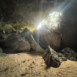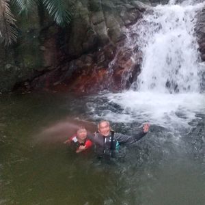 海辺に向かうまで山道を歩くところからワクワク感が高まります。洞窟は思ったよりはこじんまりしていましたが、水の色に感動しました。遠浅の海でかなり岸辺から離れたところにまでシュノーケリングし、珊瑚やサカナと戯れたことも良い思い出です。ガイドの方も親しみやすく、おしゃべりも飽きさせなかったと思います。最後に入った滝の冷たさと勢いにも圧倒され、3時間でも十分に楽しめる内容でした。
