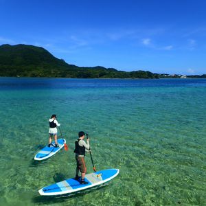 天候にも恵まれとても綺麗な川平湾でSUPすることができてよかったです!帰りは2人1組で繋げて力を合わせて漕いだのでより仲が深まったのではないでしょうか!