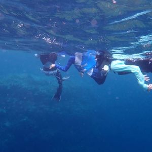 青の洞窟はとても綺麗で神秘的でした。その後のシュノーケリングでは1時間程たっぷり時間を使って深いところまで行き、沢山の魚を見ることができました。運良くウミガメも見つけられてラッキーでした。私はシュノーケリング初心者でしたが、シュノーケル道具の付け方から泳ぎ方までしっかりレクチャーして頂き、安心して泳ぐことができました。後半疲れた時は、ガイドさんの浮き輪で引っ張って頂けたので助かりました。自分達では行けない場所に沢山連れて行って頂いて、忘れられない素敵な思い出になりました!ホテル送迎や写真サービスやクラブハウスでの貸出しなど、全て大満足でした。ありがとうございました!