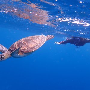 インストラクターの方が丁寧に指導してくれて、非常に楽しかったです。時期もあり、最初は寒かったですが、徐々に慣れてきました。ウミガメが海面まで上がってきてくれて、ツーショットができたのはとても嬉しかったです。