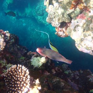 シュノーケリング中は雲が多く綺麗に陽が入るか心配でしたが、いざスタートすると歓迎してくれていたので、魚やサンゴ等