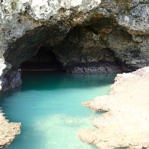青の洞窟も本当に青い洞窟といったような幻想的な洞窟。中にはお地蔵様がいました。