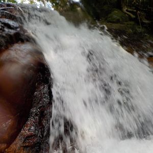 シュノーケリング後の塩抜きも最高。滝壺にダイブしました。