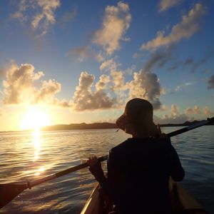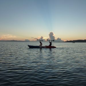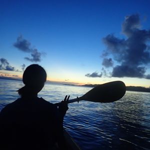 シーカヤックは安定していて、初めてでも全く問題なく操作できました。サンセットからだんだん暗闇に変わり、空を見上げると徐々に美しい星空になっていました。