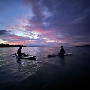 あいにく曇っていて、星は少ししか見られませんでしたが、貸切でのんびりとSUPにのって夕日と夜空と楽しめました。