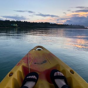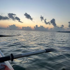 シーカヤック初体験でしたがとても楽しかったです。夕陽からの星空を楽しみに参加しました。当日は曇りで星空は見えなかったけど、夕方の海は綺麗で静かでものすごく癒されました。
