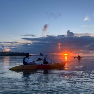 時期的に参加人数も少なかったのもあると思いますが、ゆったり海の上でカヌーを漕ぎ、素晴らしい夕日を見る体験が出来ました。また、それから、ゆっくり海が暗くなって、一番星、二番星と、星が見えて来ましたよーと、ガイドのお兄さんに教えてもらい、また、冬の星座のお話も沢山教えてもらい楽しかったです!また、カヌーで寝転んで星空を見るなんて、癒しそのものです。今度新月の時に行けたら、もっとすごい星を見れるそうなので、また、是非参加したいと思います!