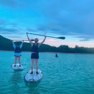 サンセット&ナイトSUPは、忘れられない体験になりました。サンセットでは、夕日が海に沈むまで自由にSUPを楽しむことができました。夕日の色が水面に映って、まるで絵画のような美しさでした。SUPに乗っていると、自分が海の一部になったような感覚になりました。夕日が沈んだ後も、空はまだオレンジ色に染まっていて、とてもロマンチックでした。