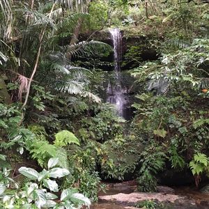 浦内川上流のトレッキングは、帰りの船が出る時刻までに戻ってこねばなりません。マリュウドゥの滝まで(片道約30分)は比較的余裕をもって行けますが、カンピレーの滝(さらに20分くらい)を目指すのであれば、基本的に休む間もなく、かなりの速度で足場の悪い山道を歩かねばなりません。滝では写真を撮ってすぐに引き返すような感じになります。幸い、晴れていたため滑るようなことはありませんでしたが、雨で濡れていたら大人の足でも時間内に帰るのは難しいと思いました。私たちは7歳+10歳の子連れで、時間内に戻ってこられましたが、なかにはカンピレーの滝は諦めて引き返す方もいらっしゃいました。もし行かれるのであればトレッキングシューズがおすすめです。