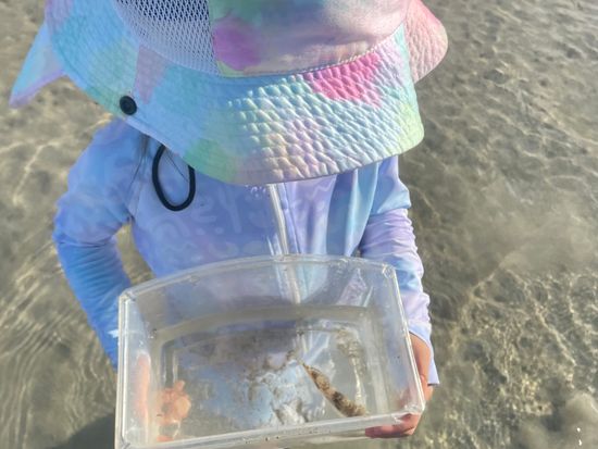 干潟に到着し、どろんこの中へ足を一歩踏み出すのも勇気がいりました。どろんこの中にいる貝が足ツボを刺激し、痛いーと叫びながら進んだのは楽しかったです。