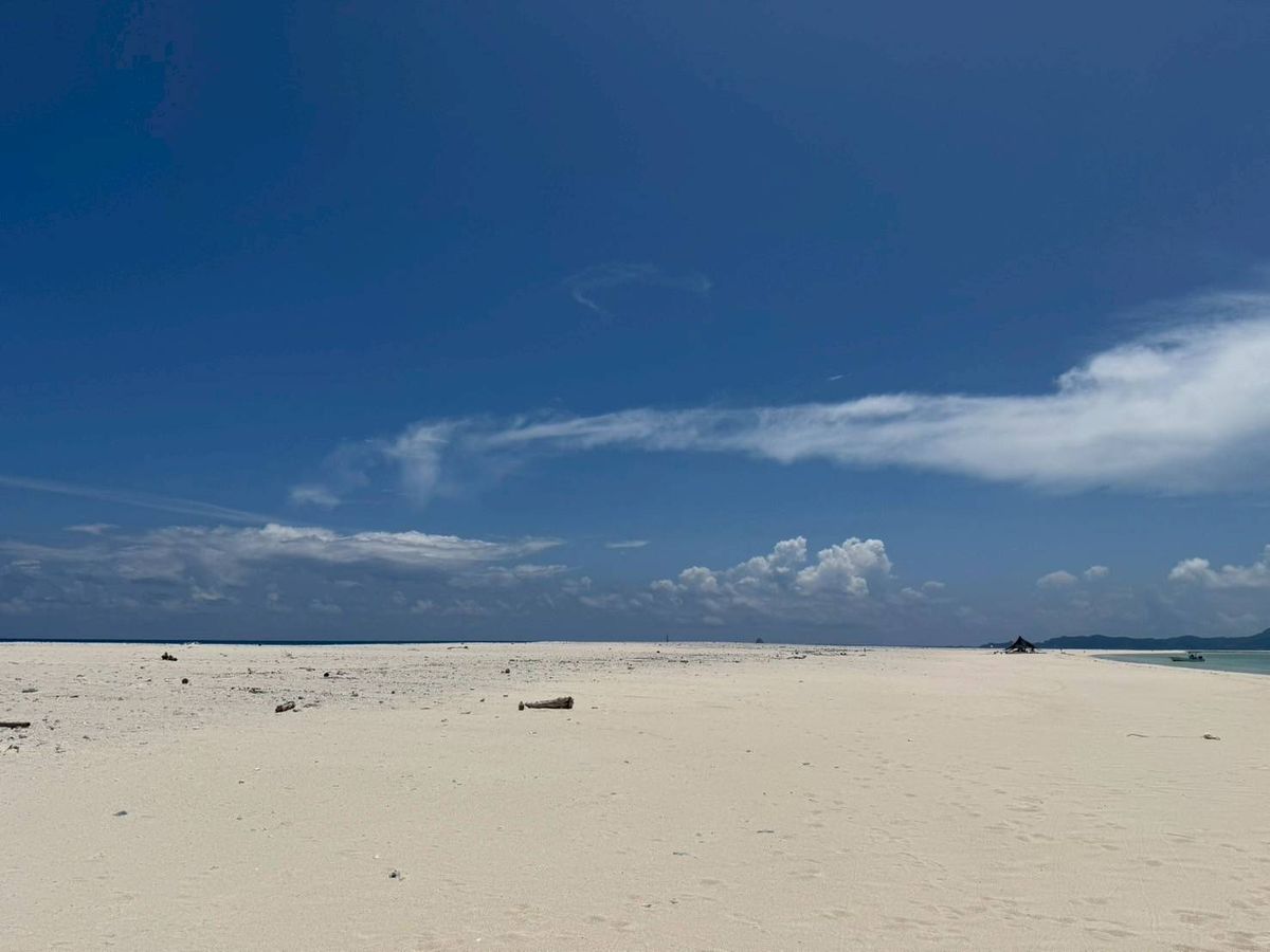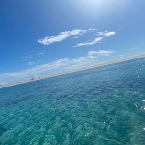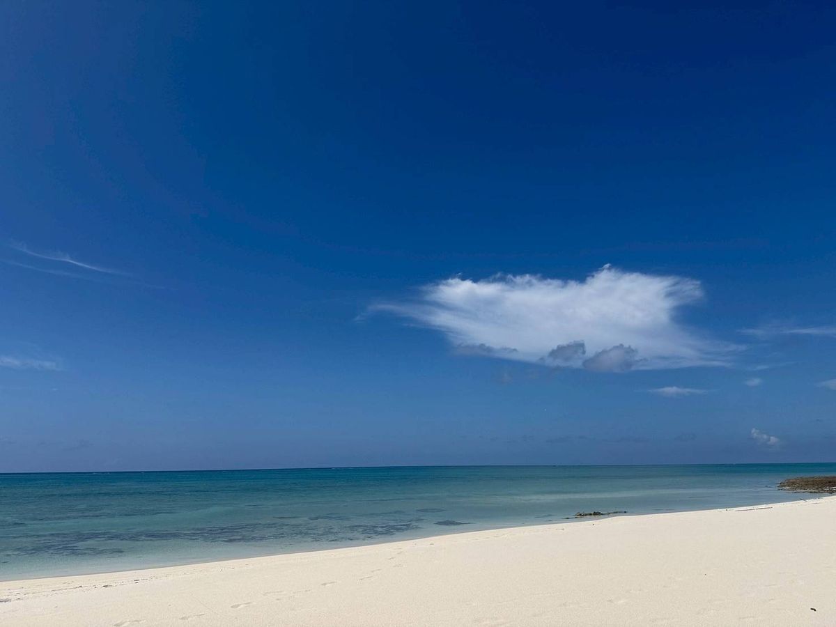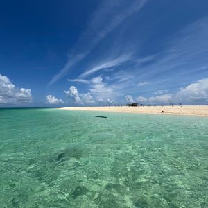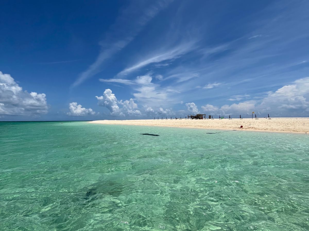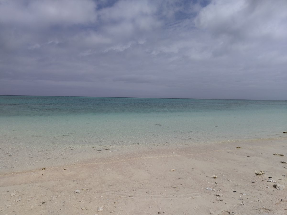 一面、白い砂浜とキレイな海、大空しかありません。透明度がとても高いキレイな海でした。シュノーケリングツアーがなくても、たくさの魚を見ることができました。パンをあげると、たくさんの魚がよってきました。