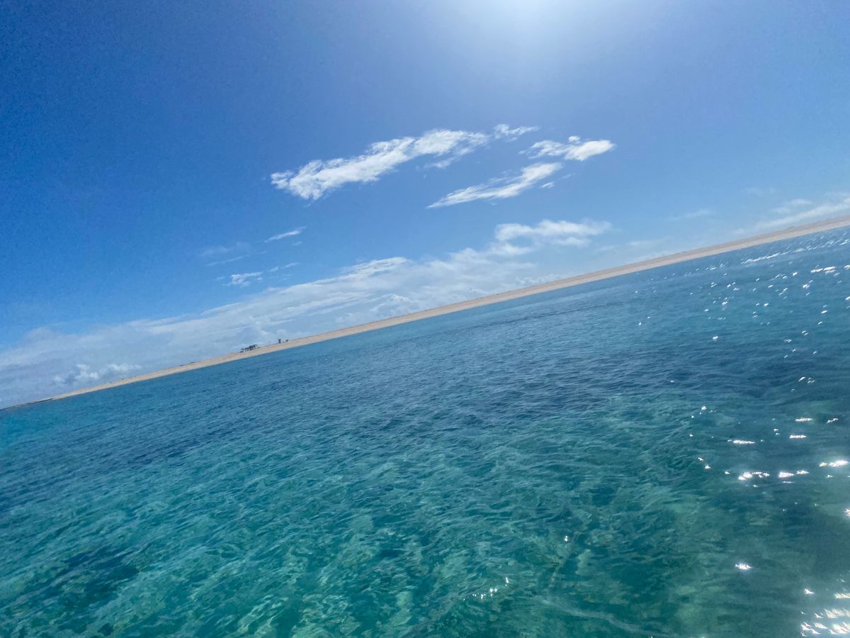 砂漠のように続く白い浜と、人生で1番綺麗な海でした!海は赤いブイで囲いがしてあり、その中で泳ぐ形です。