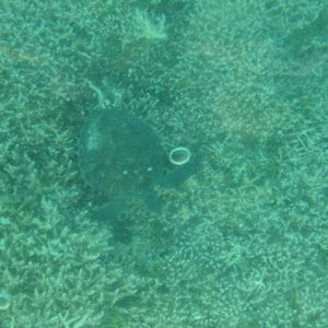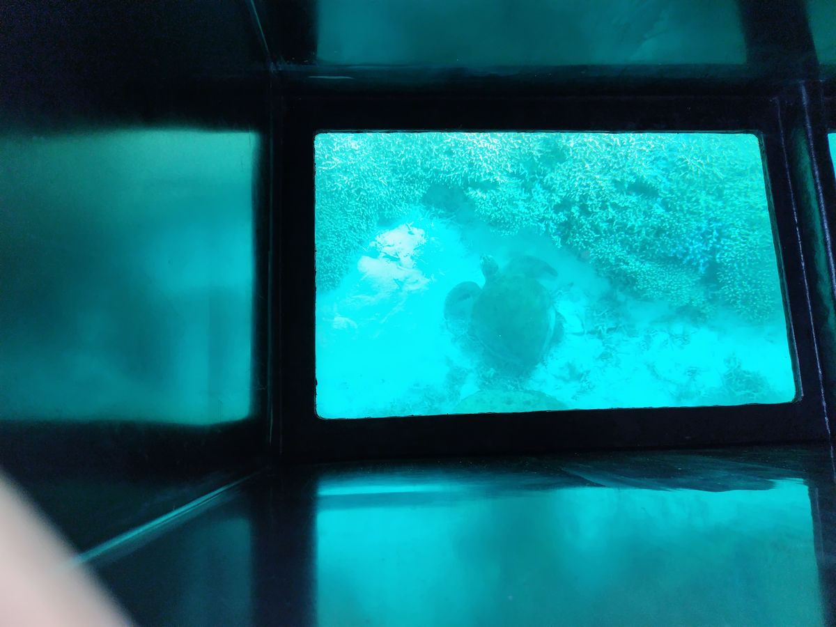 ウミガメはグラスボートから見ることができました。