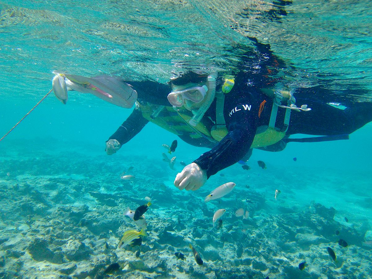 ツアーでは、ポイントからずっと担当の方が先頭に立って泳いで下さいました。海は透き通っていて、魚達がたくさんいて集まって来てくれて本当に楽しかったです。素敵な体験が出来ました。