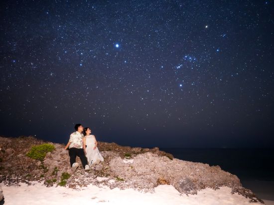 撮影当日は、人の少ない場所へ案内していただき、落ち着いた雰囲気の中でとても素敵な写真を撮っていただけました。私たちの前に撮影されている方がいた際には、寝転べる椅子に座らせていただき、星空鑑賞までさせてもらえて感動しました。こんなに綺麗な星を見たのは初めてです。