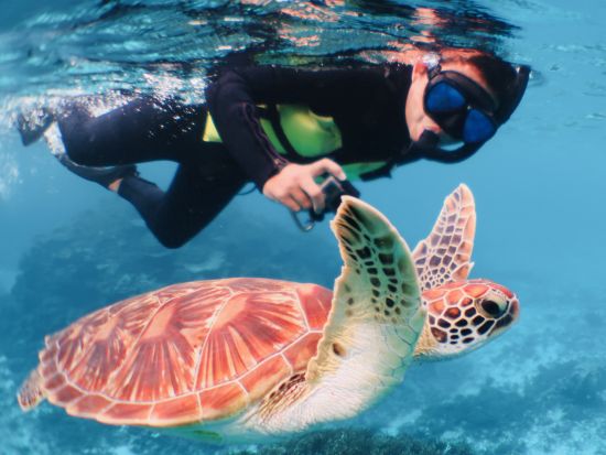 ウミガメと一緒に泳げる感動体験♪クマノミや熱帯魚たちにも出会えるシュノーケルツアー!