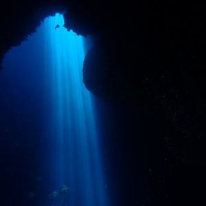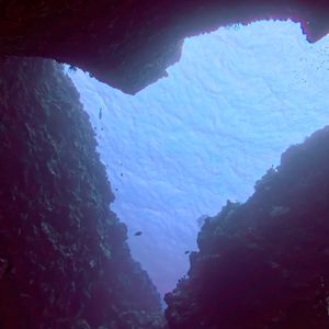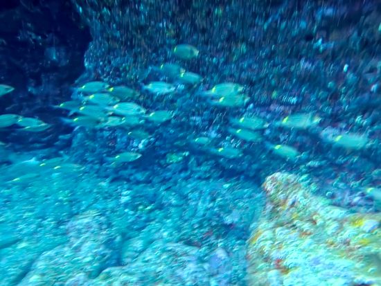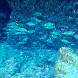 天気は曇りで光が十分ではなかったものの洞窟のような穴の中を進むことが多く、洞窟のなかから見上げる海がとてもきれいで、洞窟のなかには魚もたくさんいて楽しかったです。次は光が水中までたくさん差し込む晴れの日に潜ってみたいなと思いました。