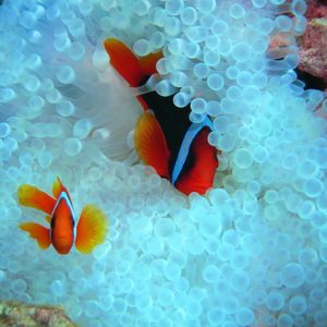 クマノミもたくさんいましたが、なぜか巨大サイズでした。