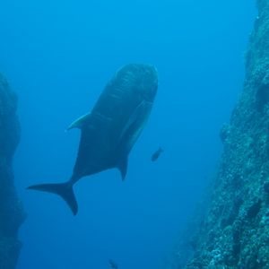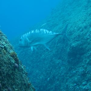 3本目は本ドロップというところで、巨大なロウニンアジ2匹が泳いでいて