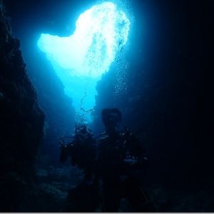 地形ダイビングも初めてでしたが、青い海と相まって最高でした。ダイビングといえば綺麗な魚と思っていましたが、ダイナミックな大自然にはまりそうです(しかも地形がハート形だったりするので余計に楽しい)。