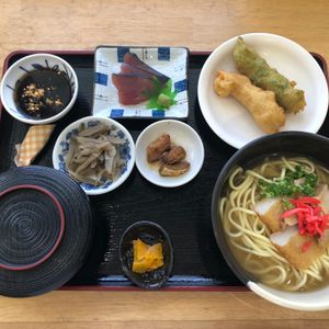 ランチは何時もの場所ではなく急遽変更になった為ガイドさんがオーダーを撮り私達は美味しい宮古そばとカツ丼のコンビネーションにしましたが宮古そば
