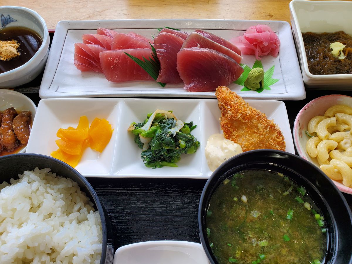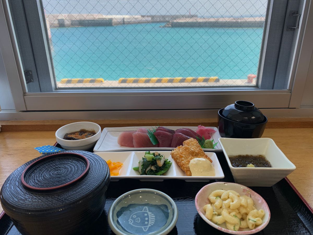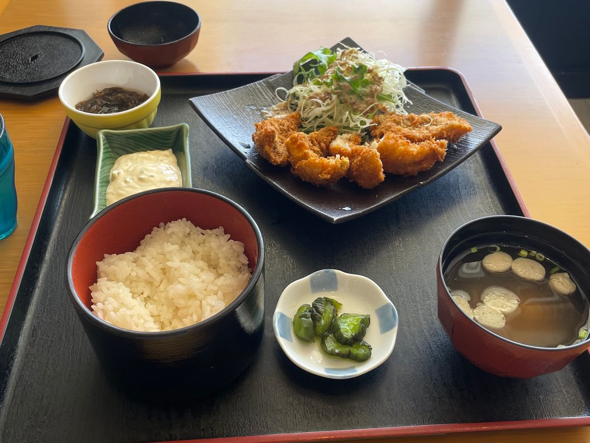 また、この日はいつものお食事処がお休みの日で、別の場所でお魚のフライ定食をいただきましたが、美味しさに驚き!魚フライはふわっふわで、今まで食べた魚フライの中で1番美味しかったです!また、もずくも美味しかったです!