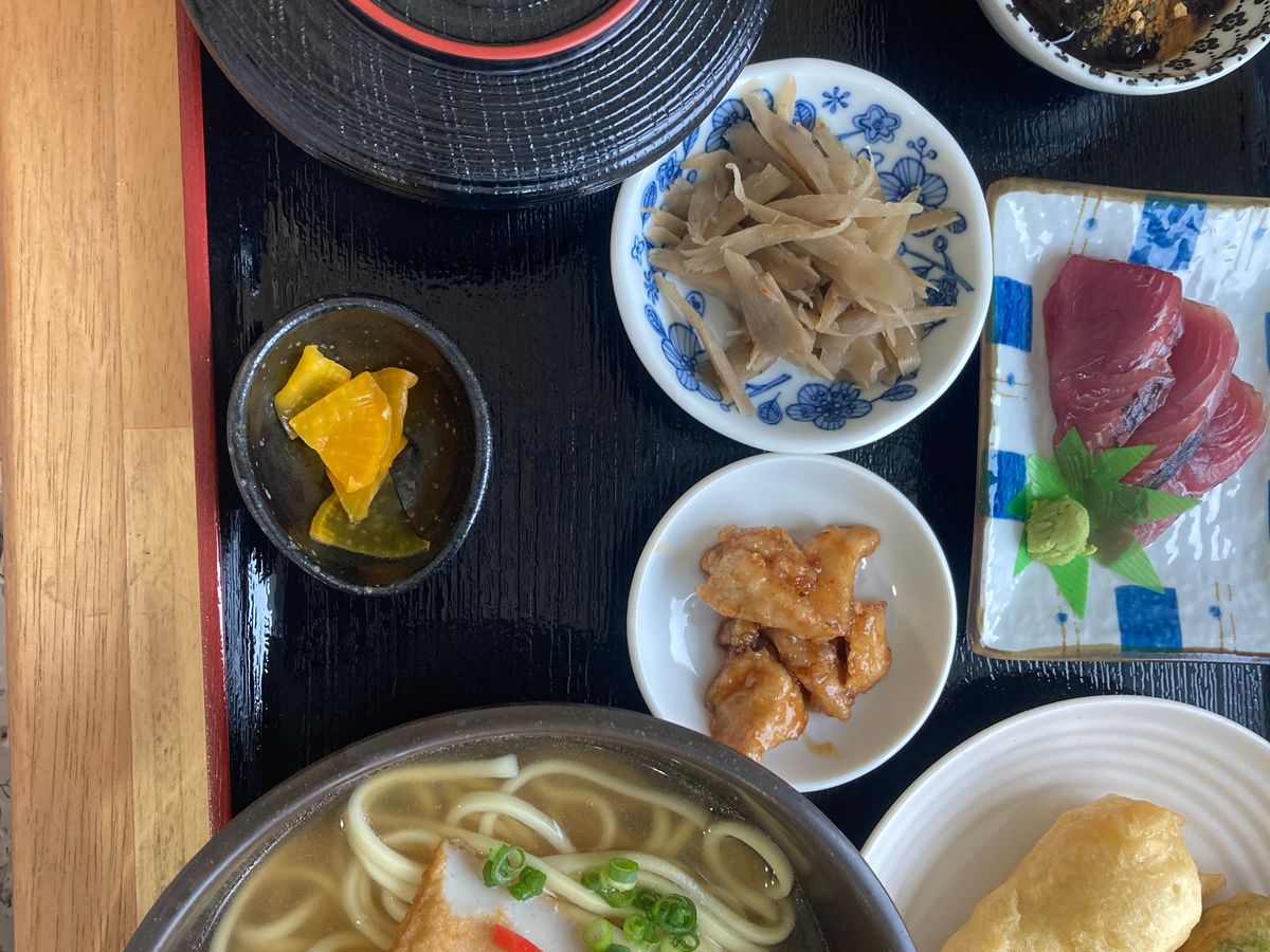 家族4人で参加。ツアーガイドの平野さんの説明がわかりやすく、どんな質問にも丁寧に答えてくださいました。前日にタクシーの運転手さんがおすすめだと言っていたおーばんまい食堂でお昼ごはんだったので、とても嬉しかったです。お昼は宮古そば定食か刺身定食か選べます。私は刺身定食にしました。ボリュームがあって、刺身が新鮮でとても美味しかったです。人気店みたいほぼ満員だったのですが、海が見える席を予約席として抑えてくれていました。海を見ながらのランチ最高でした!