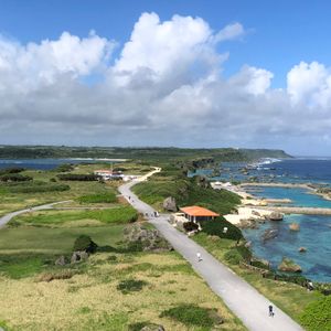 沖縄県宮古島市の南西部に位置する「来間大橋(くりまおおはし)」は、宮古島と来間島とを結ぶ全長1,690mの農道橋で1995年3月に開通しました。農道橋としては日本最大級の長さです。農業橋とはいえ、エメラルドグリーンのサンゴ礁の海に一直線に伸びる姿が美しい白い橋で、大型船が航行するため橋の中央部が盛り上がっているユニークな形をしています。また、来間島の緑豊かな風景や、宮古島側に広がる、与那覇前浜の白砂ビーチを見渡すことができ、ドライブのスポットとしても人気があります。