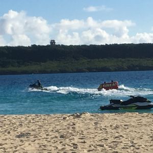 マリンスポーツは私は初めてでしたが、予想より衝撃が大きかったので、正直けっこう怖かったです。しぶきで前がほとんど見られなかったので、ゴーグルを持っていけばよかったと思いました。一緒に行った人(男性)は楽しんでいました。普通の浮き輪などももしあればよかったと思います。