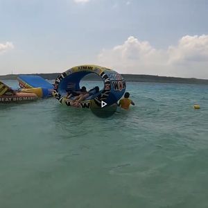 最初はシュノーケリングスポットまでバナナボートで移動。4連休はやびじ含めたくさん海の中を見ましたが、こちらも綺麗で魚が近かった〜。クマノミにも会えました!その後は、バナナボートツアーで来間島を海から眺めながら快適なクルージング♪ビーチでヤドカリに夢中になっている娘にお姉さんが優しく声をかけてくれたことで、娘に火が付き、それからはアクティビティばかり。一通り全種類試した後で、娘はマーブルが気に入り、マーブルアンコールの嵐!笑!高波も相まってか、スピードに乗るとお尻がジャンプして浮きまくり♪カーブでは床に着いたお尻は海水で横滑りしまくり♪落ちそうだけど落ちない微妙なハンドルさばきに奇声をあげながら、親子ともども楽しませて頂きました!