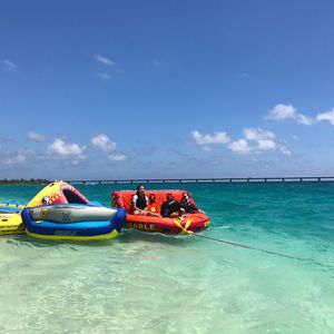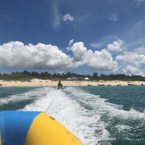 マリンスポーツは5種類の乗り物があり、乗りたいものを乗ることができますが、ジェットが2台なので状況により待ち時間があります。乗り物はスタッフさんにリクエストすれば、スピードアップもしてくれるのでスリルをあじわうことができ楽しかったです!マリンスポーツ中に、顔を出した海ガメにもたまたま会え感動しました。