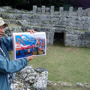 宮古島の史跡などを巡りながら、歴史や昔から伝わる話について紙芝居を交えてわかりやすく説明していただけます。宮古島と琉球全体の歴史の人物や物語について興味深くお話してくれて、気づけば聞き入っていました。