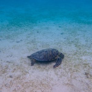 海に入ってすぐにウミガメを発見。天気は曇りでしたが海の中は透明度も高くとても綺麗ではっきり見ることができました。