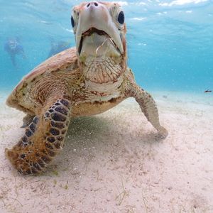 海に入り簡単なレクチャーを受けてすぐに出発。思っていたよりはすぐにウミガメに会えました(海に入り15分位)。人間に慣れているのかゆっくり見られます。近付いても来てくれます。担当のコメッチさんは元気で気さくな配慮のある人で良かったです。私はシュノーケリングで海酔いした経験もあるので不安でしたが「大丈夫。ダメそうだったら途中で陸まで送り届けます」と言ってくれて出発。ウミガメに会えたので予定の半分位の時間で私だけ引き返させてもらいました。陸まで送り届けてもらい「お子さん、ちゃんと見ますね」と言ってくれ、とてもありがたかったです。親切な対応でとても良い思い出になりました。