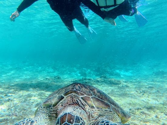 初めてのシュノーケリングで、少し不安でしたが、海の中は綺麗でたくさんの魚やウミガメに会うことができ感動しました。