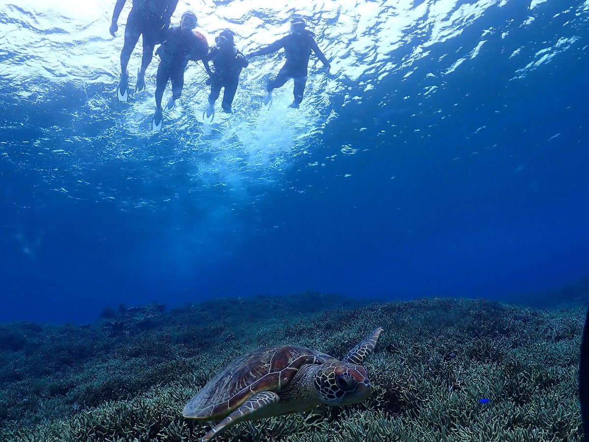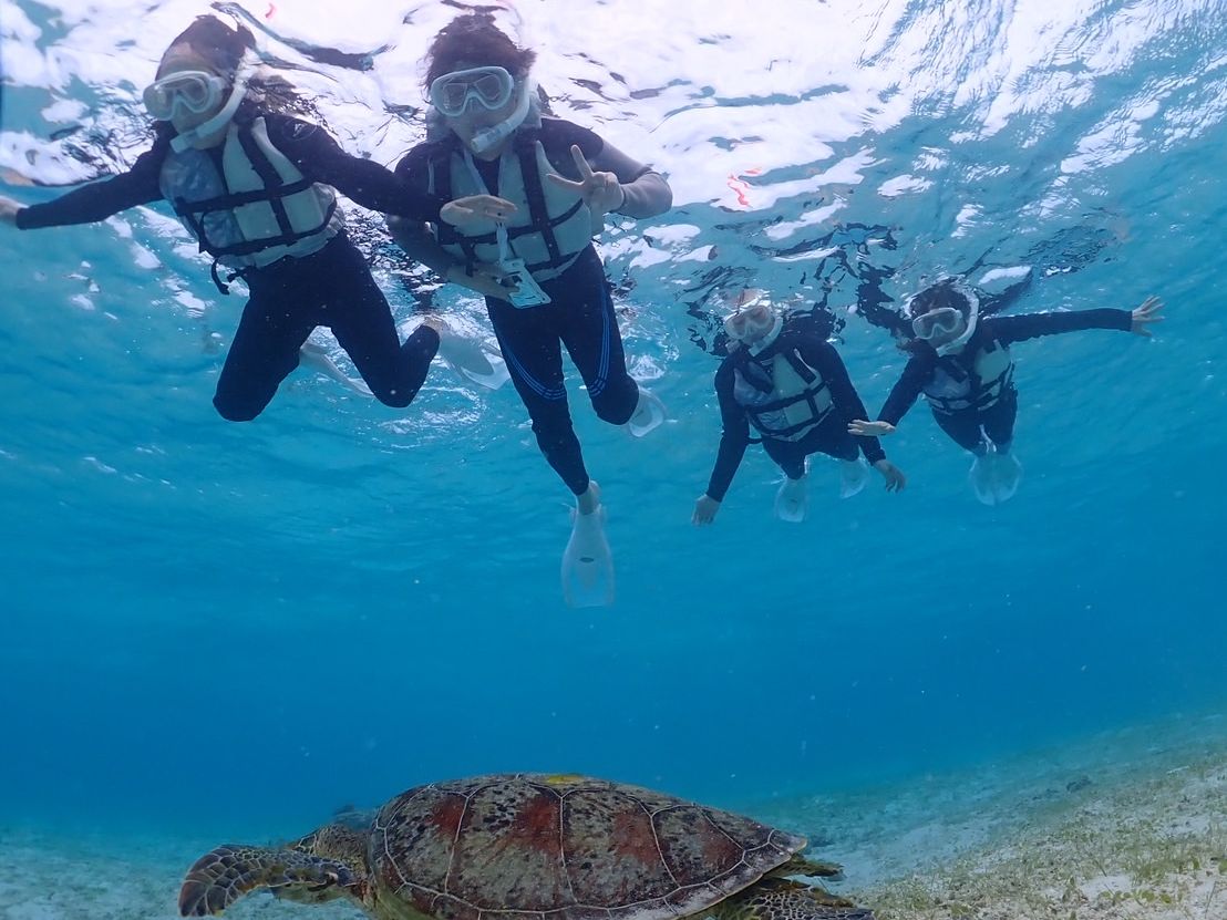初めてのシュノーケリングで、少し不安でしたが、海の中は綺麗でたくさんの魚やウミガメに会うことができ感動しました。