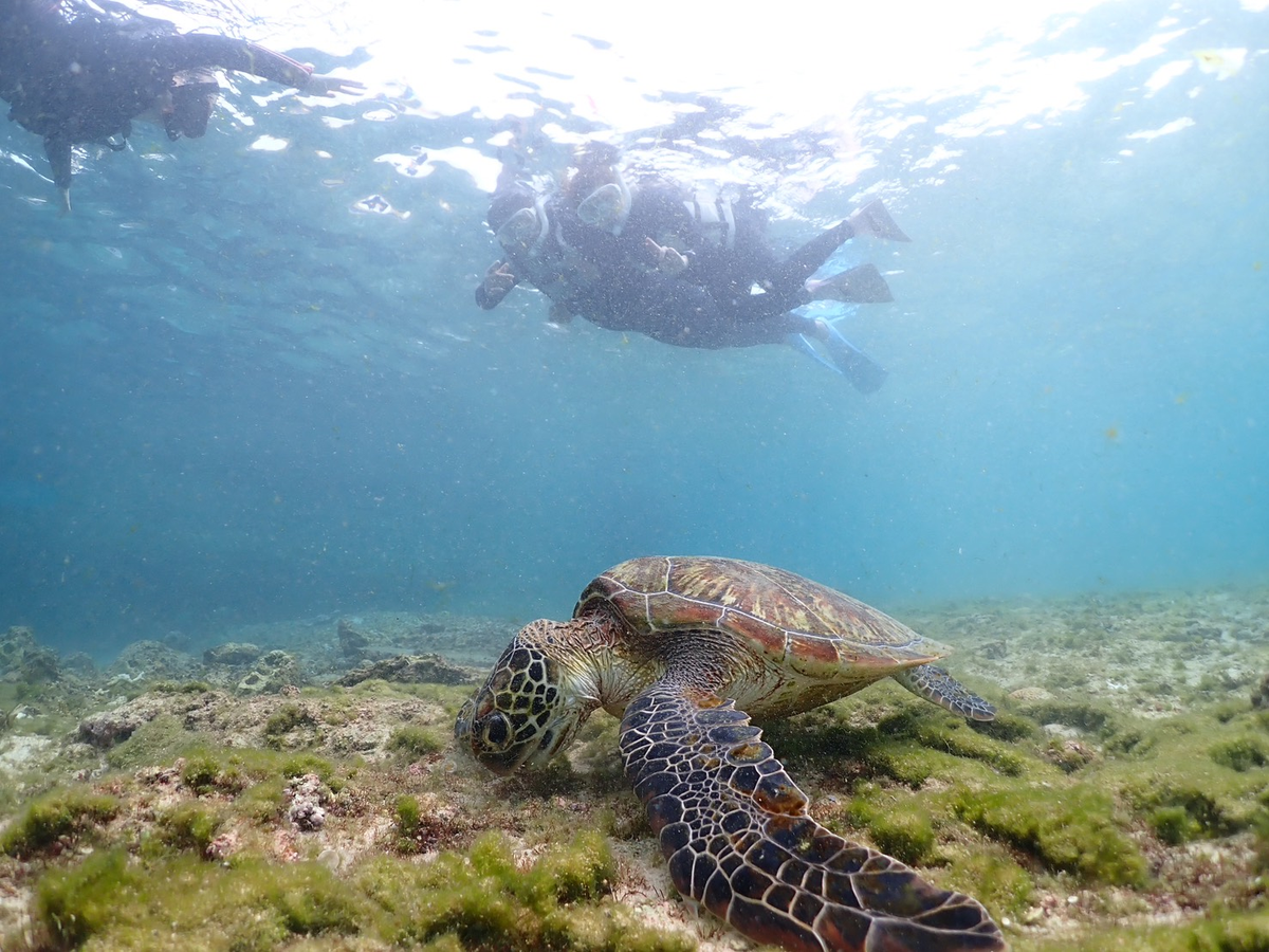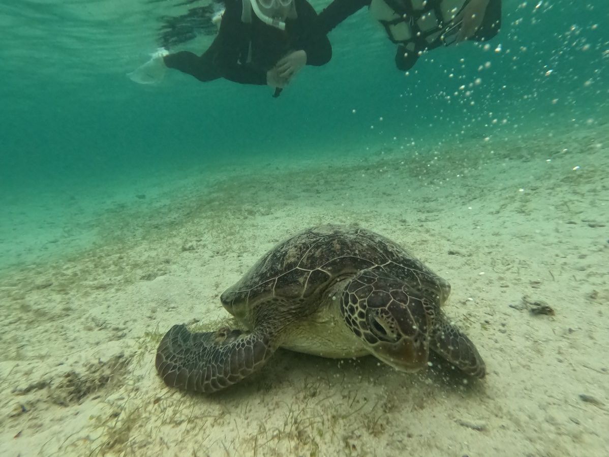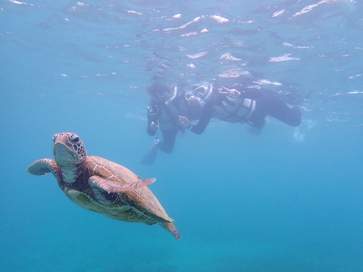 たいちさんのガイドで海に入ってすぐにウミガメに遭遇しました!
