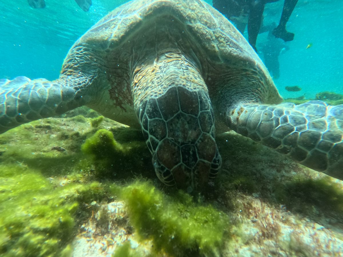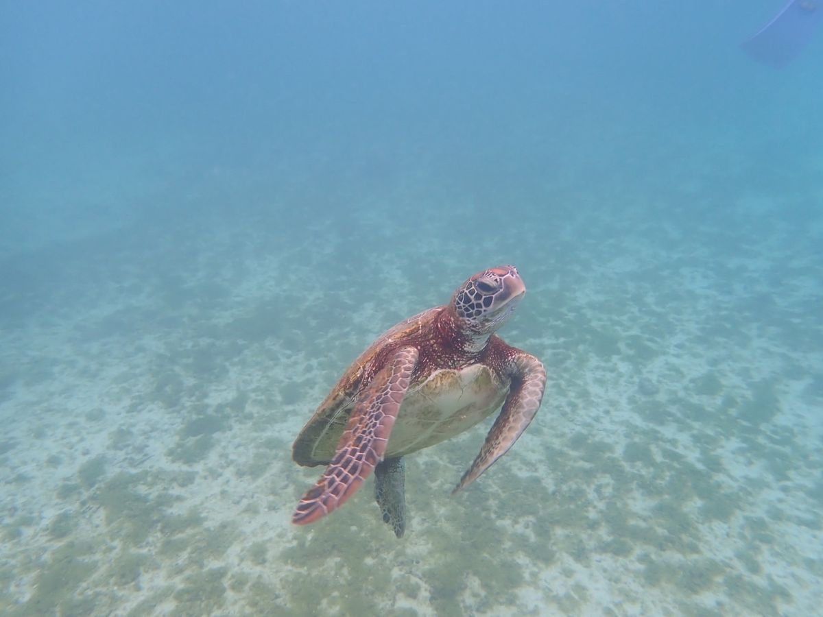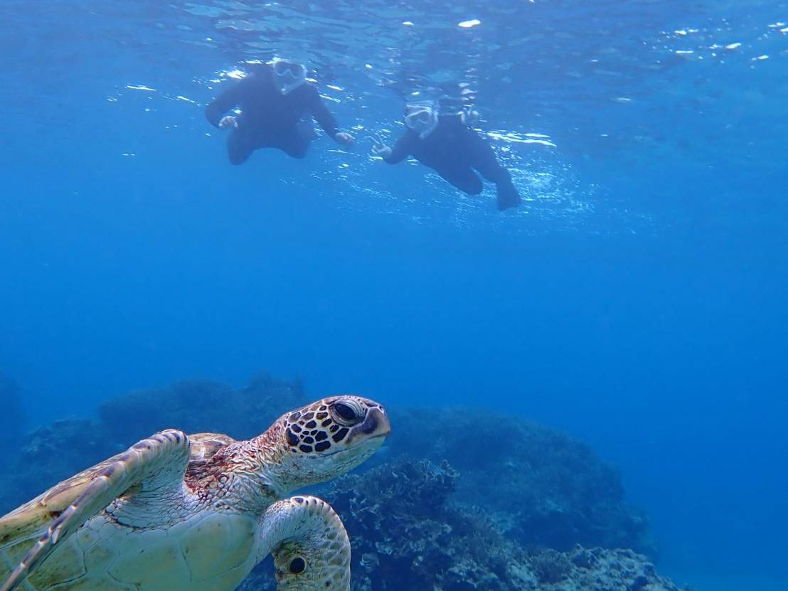 たいちさんのガイドで海に入ってすぐにウミガメに遭遇しました!