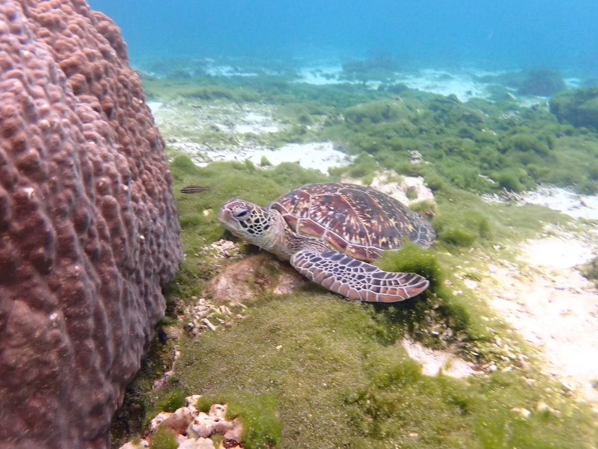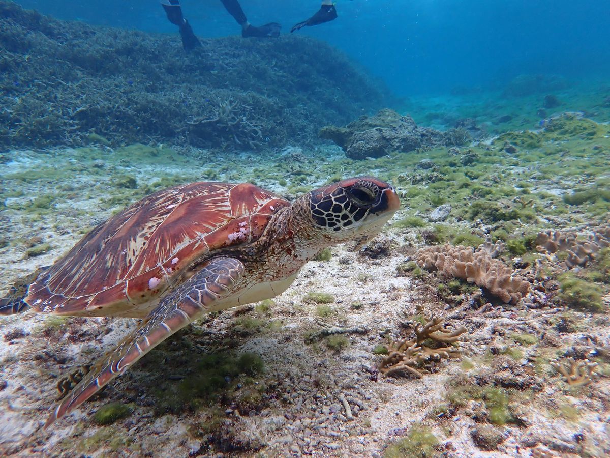海に入ってすぐにウミガメと出会うことが出来、のんびりとしたカメさんの様子に癒されました。