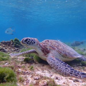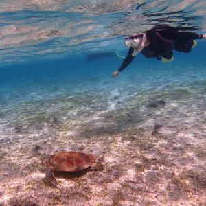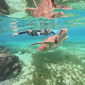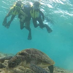 シュノーケリングが初めてだったのですが、問題なく楽しめすぐにきれいな魚やサンゴを見れて夢中になって楽しみました。私たちは運が悪かったらしくなかなかウミガメさんが見つかりませんでしたがまーしさんが一所懸命探してくれて無事会うことができて大満足でした。