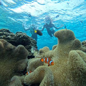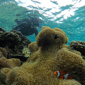 雨が降っていたので心配していましたが、無事にシュノーケルをすることができました。担当の森田さんが良いスポットに連れて行ってくださったおかげでウミガメやカクレクマノミなど間近で見ることが出来て、ニモの世界に入れたような気持ちになれました。