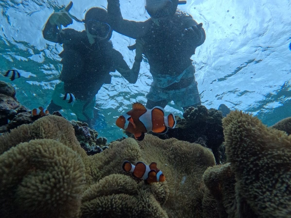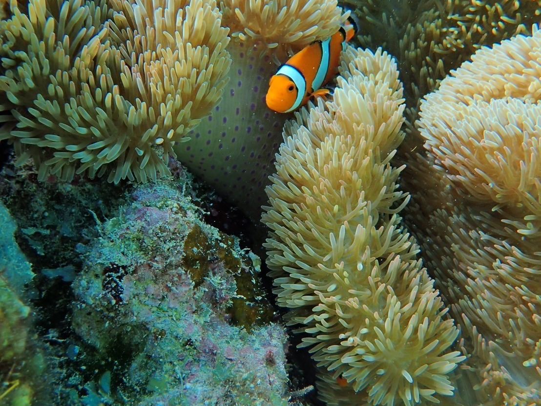 シュノーケリングでは、ウミガメにも遭遇でき、隠れクマノミなどの魚も間近で見ることか出来ました。