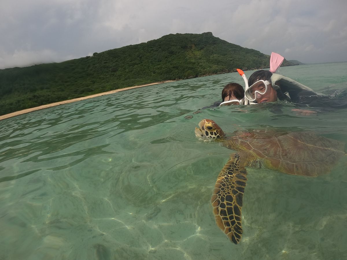 ウミガメとも遭遇しそこでも写真を撮ってもらえるので思い出作りに最高でした!