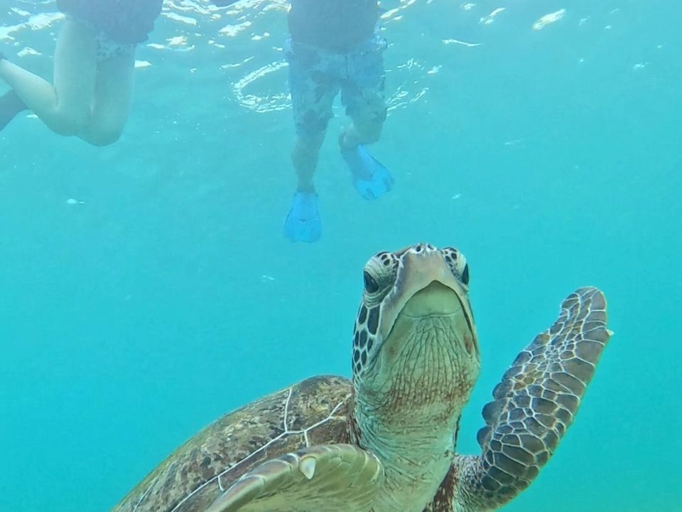 午後の部に参加し、ガイドの【やまちゃん】に案内いただきました。ガイド1人につき、4名でとても丁寧に対応してくださいました。機材の使い方から、海、ウミガメの説明まで丁寧だったので安心して参加することができました!そして念願のウミガメに会うことができたくさん写真も撮ってくれました。体験後はおすすめのお店等も教えていただき、初日にお会いしたかったなあと思えるガイドさんでした。ずっと夢見ていたウミガメにあうことができ、泳ぐことができ最高の思い出になりました!おすすめです!