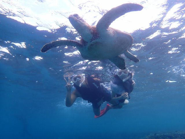 シュノーケルもウミガメに出会えて、素敵な写真を撮っていただけたので本当に最高でした!