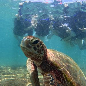 先日、2歳の息子と一緒に参加しました。小さな子ども連れということで不安もありましたが、スタッフの方がとても親切で、息子にも丁寧に接してくださり、安心して楽しむことができました。ガイドさんが息子との写真が撮れるようにウミガメに誘導してくれたり、ウミガメだけでなく実際に綺麗なお魚とはじめての息子の喜びようは忘れられません。大人も子どもも一緒に楽しめる、素晴らしい体験をありがとうございました。前日にお電話で、小さな子供の場合は潮加減を見て8:30の回を勧めていただきました。大正解でした!