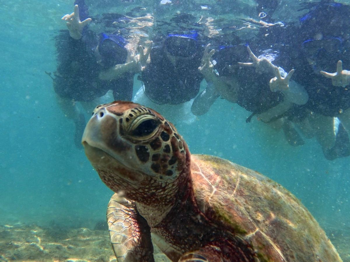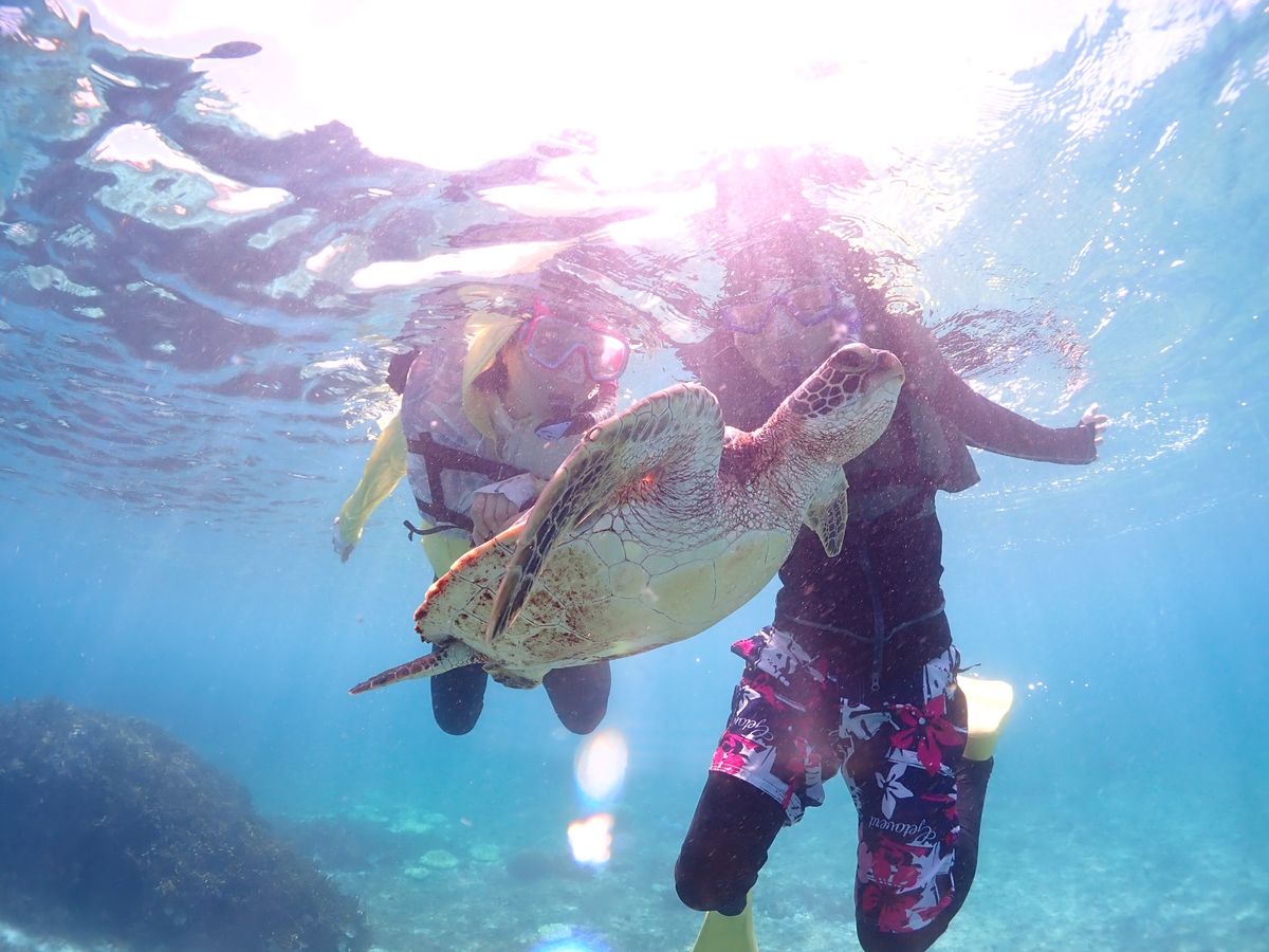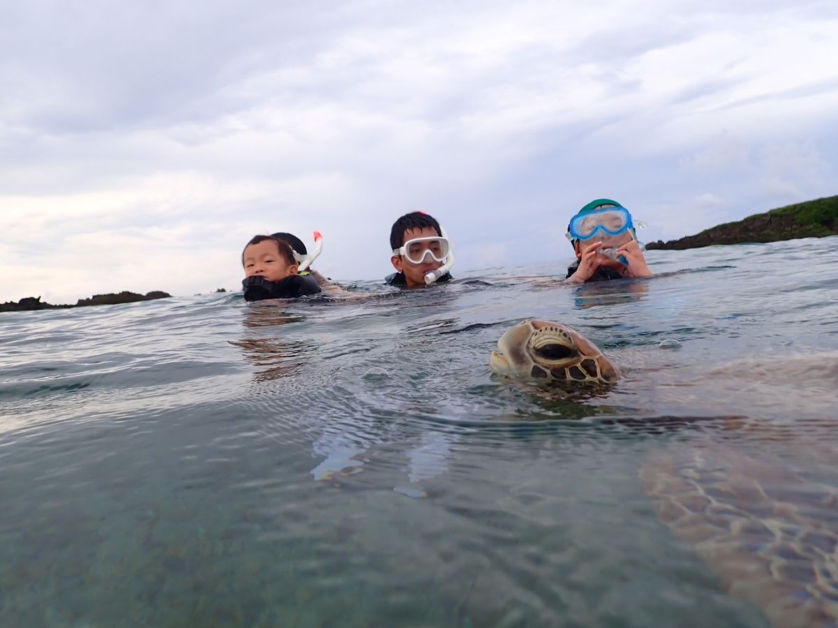 先日、2歳の息子と一緒に参加しました。小さな子ども連れということで不安もありましたが、スタッフの方がとても親切で、息子にも丁寧に接してくださり、安心して楽しむことができました。ガイドさんが息子との写真が撮れるようにウミガメに誘導してくれたり、ウミガメだけでなく実際に綺麗なお魚とはじめての息子の喜びようは忘れられません。大人も子どもも一緒に楽しめる、素晴らしい体験をありがとうございました。前日にお電話で、小さな子供の場合は潮加減を見て8:30の回を勧めていただきました。大正解でした!