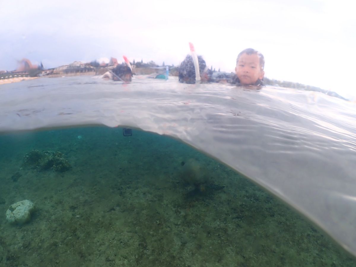 6歳はシュノーケルをつけて、大満喫!かめ!さかな!さかな!!ふかーい!と大興奮でした。