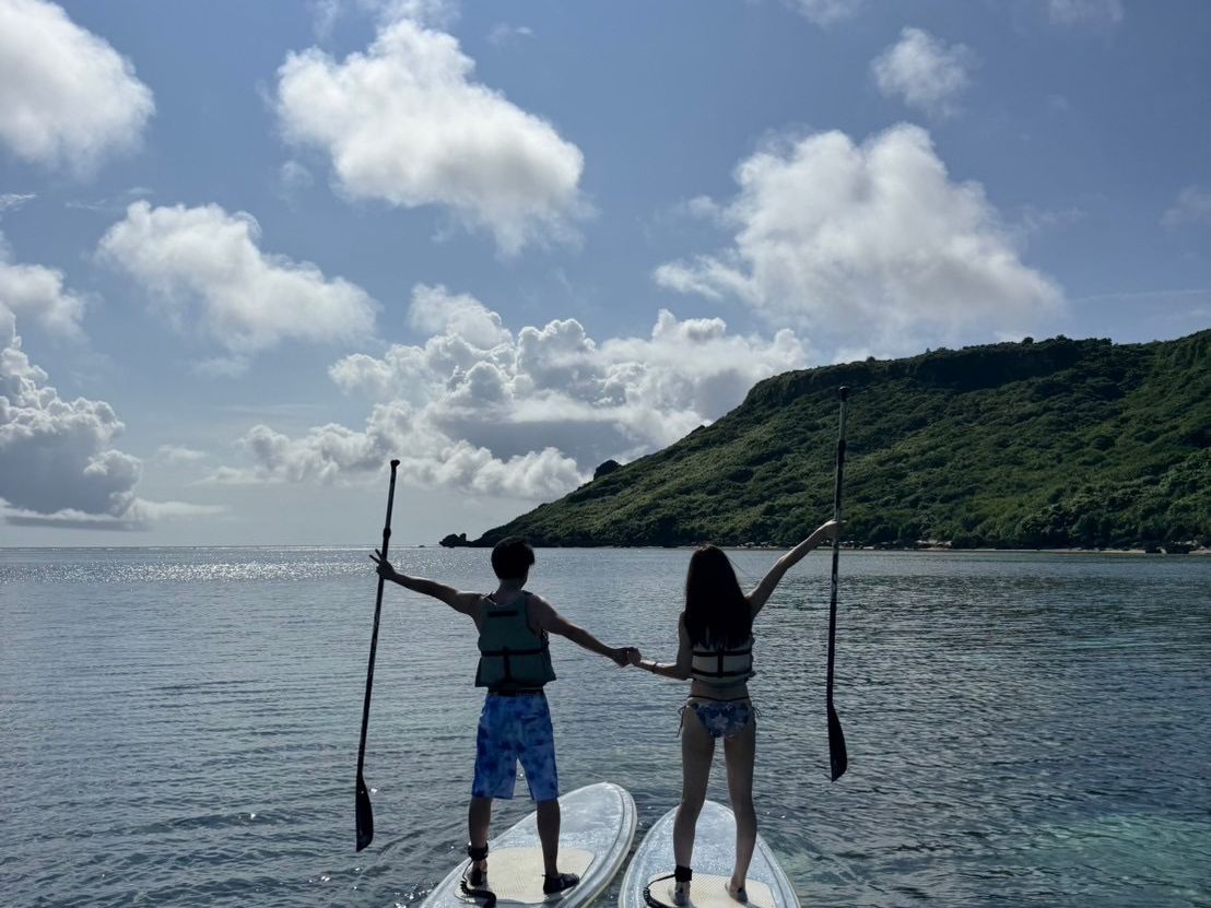 今回友人とsupとsnorkelingのツアーに参加しました。友人は2つとも初めてで始まる前まで出来るか本人はとても不安になっていましたが、優しいガイドさんのおかげで怪我なく無事楽しめました。ガイドの方は若い方だったので自分たちと年も近く、ツアーに参加しながらお話などもたくさんして素敵な時間を過ごすことができました。説明も丁寧でしたし、できなくても一緒に歩み寄ってくださる方々なので初めての方も十分楽しめるツアーだと思います。海のアクティビティはリスクがあるため携帯等を海の上に持っていくのに不安のある方も多いと思いますが、ツアー中はガイドの方がアクションカメラで水陸両方で写真・動画をたくさん撮って下さるので思い出も形に残したいって方にもおすすめできます。野生のウミガメやカクレクマノミに会えて、宮古ブルーの海に入れるので本当におすすめです。