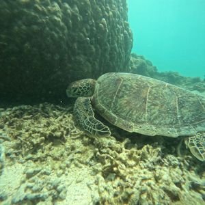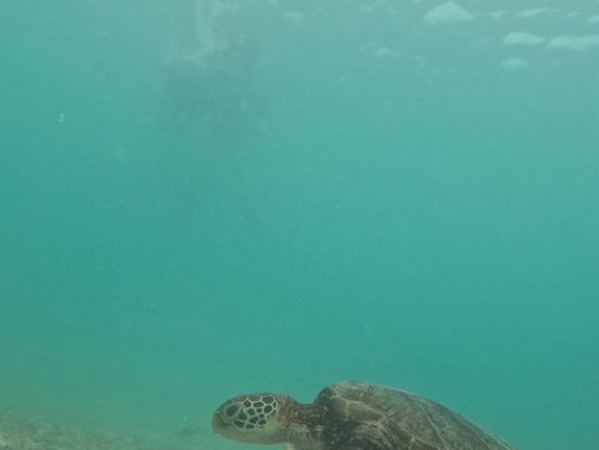 ビーチからすぐに海亀に遭遇し、蹴ってしまわないか不安なほど足元近くにきてくれて、感激でした。